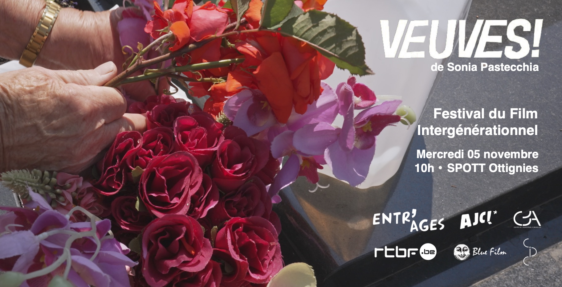Début novembre, « Veuves ! » sera présenté à Ottignies à l’occasion de la 8ème édition du Festival du Film Intergénérationnel organisé Entr’âges asbl. Le FFI proposera 3 projections durant la journée pour célébrer la solidarité entre les générations à travers le 7ème art. Chaque film aborde des sujets qui renforcent les liens entre les générations avec un regard singulier pour lutter contre les stéréotypes liés à l’âge.
